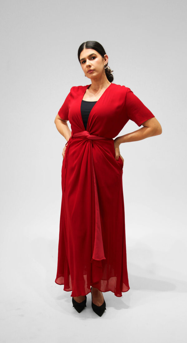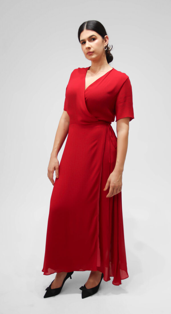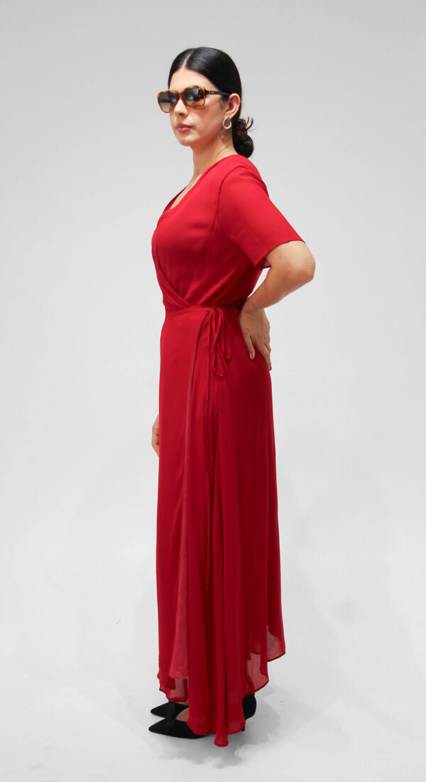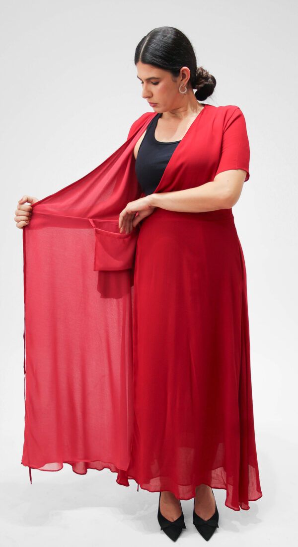 Forrado, esvoaçante e semi godê este vestido longo, tem um componente delicado em sua aparência.